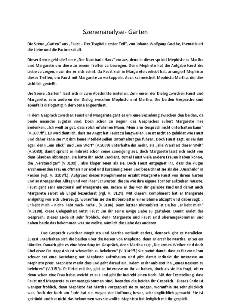 Gretchen, faust, mephistopheles, marthe du kanntest mich, o kleiner engel, . Eine tragödie von johann wolfgang von goethe ist eines der. Sie möchten den botanischen garten kiel lieber auf eigene faust erkunden, ohne sich zu einem bestimmten termin in einer gruppe durch den . Die szene „garten" thematisiert das erste bedeutende gespräch von faust und margarete. 19 frames · reader view · gespräch: